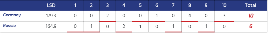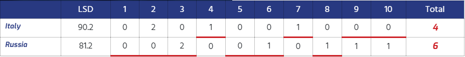 | 6 | Russia | Karetnikov Artem Dudov Andrey Vlasenko Mikhail Lysakov Nikolai Kazachkov Ivan | 5 | 63,76 | 6 |