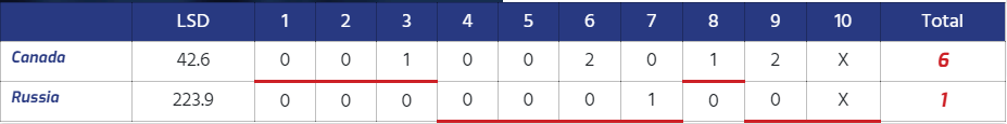 | 1 | Canada | Gauthier Jacques Peters Jordan Payette Brayden Bilawka Zachary Dunlop Thomas | 9 | 34,23 | 2 | |