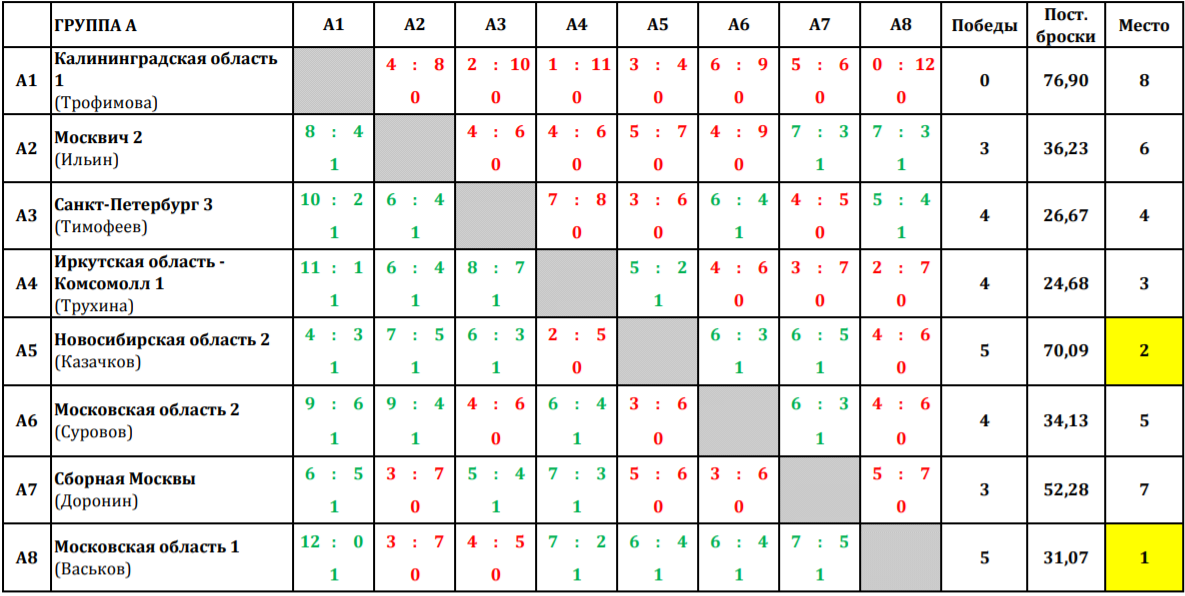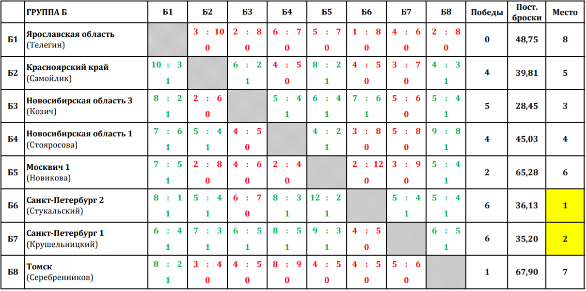 12 тур: Группа Б - по пять побед у команд - Санкт-Петербург 2 (Стукальский) и Санкт-Петербург 1 (Крушельницкий), по четыре победы у команд - Новосибирская область 3 (Козич) и Новосибирская область 1 (Стояросова)