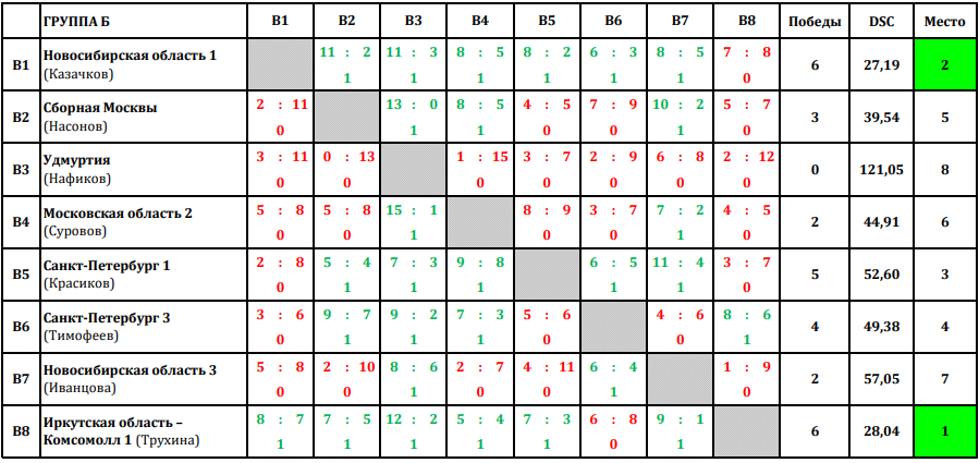 14 тур: группа Б - в плей-офф вышли - Комсомолл 1 (Трухина) и Новосибирская область 1 (Казачков)