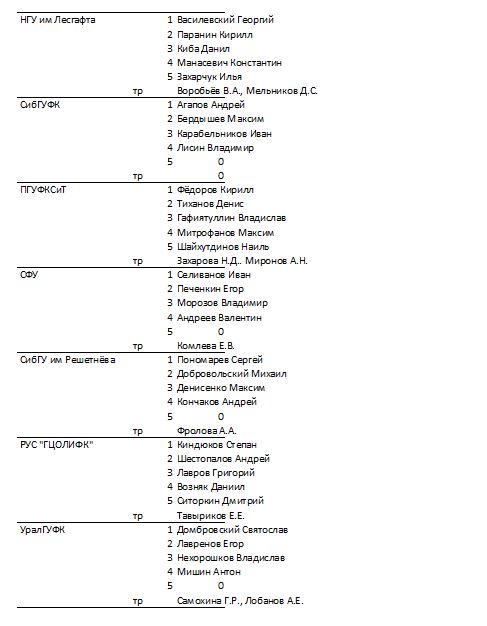 Составы команд: