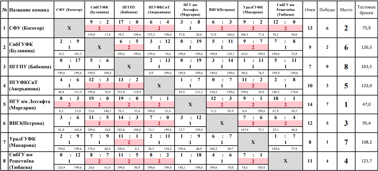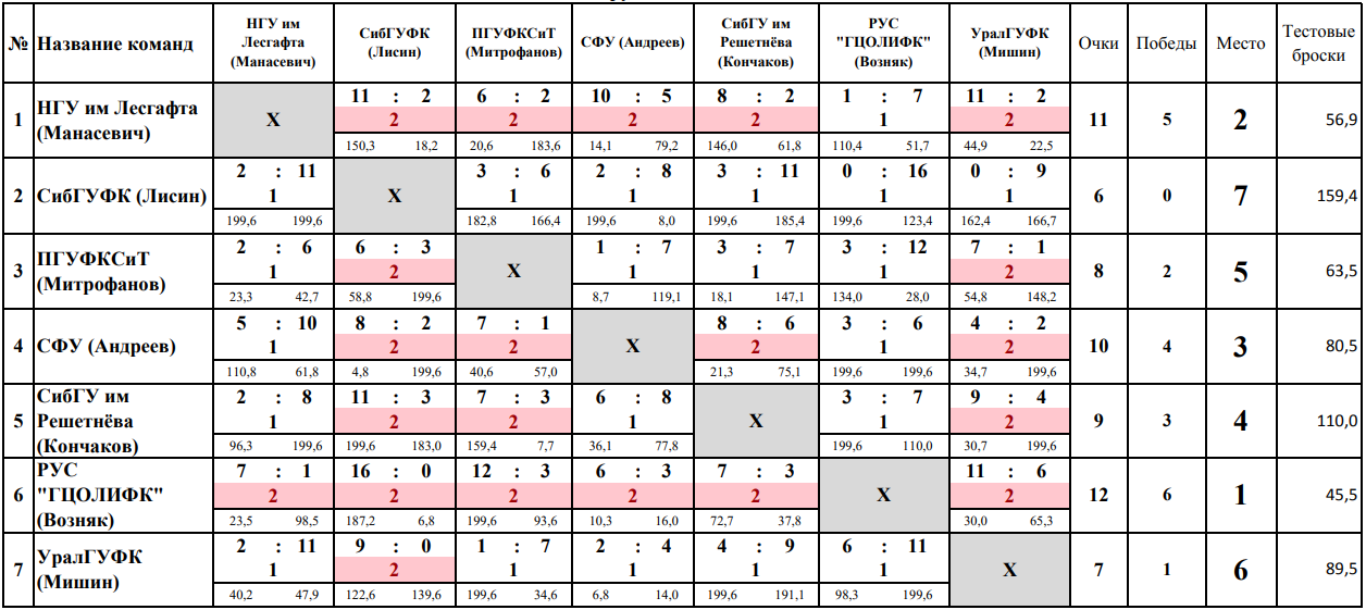 По итогам прошедших игр призовые места заняли: